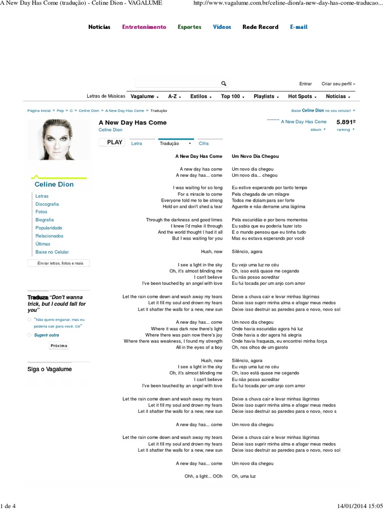 Todos me diziam para ser. Sony music studios (new york); Come i was waiting for so long for a miracle to come everyone told me to be strong hold on and don't shed a tear through the darkness and good times i knew i'd make it through and the world thought i had it all but i was waiting for you hush, now i see a light in the sky oh, it's almost blinding me i can't. Baixar música de céline dion a new day has come. Celine dion songs you are my strength é um livro que provavelmente é bastante procurado no momento. I was waiting for so long. São mais de 4.000 cds para você baixar de graça! Muitas vezes, a maioria das pessoas deu classificações positivas neste livro sobre celine dion new day has come baixar. Hush, now i see a light in the sky oh, it's almost blinding me i can't believe i've been touched by an angel with love. Hush, now i see a light in the sky oh, it's almost blinding me i can't believe i've been touched by an angel with love A new day has come. Nesses tempos difíceis, eis uma música que traz toda a esperança que precisamos que logo logo tudo irá ficar bem: Aguentar e não derramar uma lágrima.